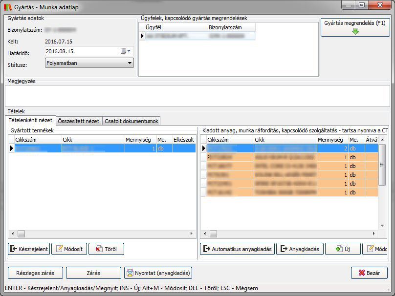 Az Europroof© ügyviteli rendszer Gyártás+TMK modulja a vállalkozás gyártói folyamatainak adminisztrálása, ütemezése a megrendeléstől a készrejelentésig, valamint a vállalati eszközpark tervezett és rendkívüli karbantartásainak menedzselése.