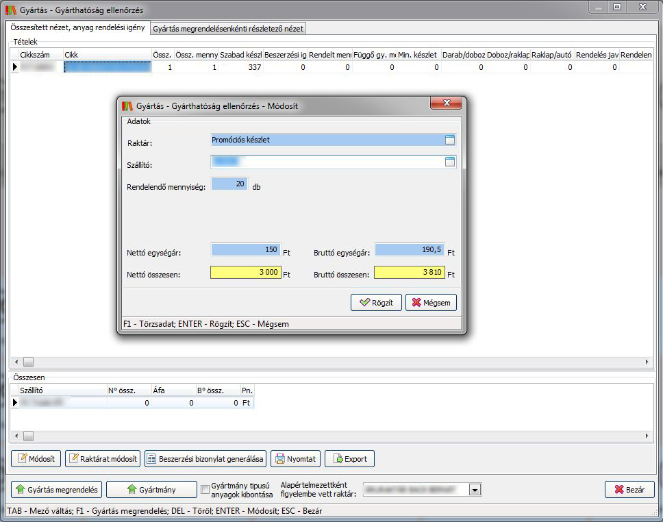 Az Europroof© ügyviteli rendszer Gyártás és TMK modulja alkalmas a különböző telephelyeken található gyártóegységek folyamatainak támogatására. Gyártás és gyártás tervezés funkciók aktívan illeszkednek az Europroof rendszer értékesítési, raktári és logisztikai moduljaihoz. A terméktörzsben külön jelölhetők a gyártásra kerülő termékek, így ezeknél megadhatók a receptúrák. A gyártás ütemezés során előre tudjuk ütemezni a megrendelések alapján a gyártást. A TMK modul segítségével előre ütemezhető az eszközparkok tervezett és a rendkívüli karbantartása.