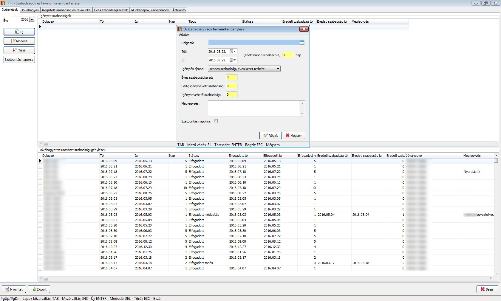 Az Europroof© ügyviteli rendszer HR modulja a felrögzített személyek adatait egy helyen kezelhetjük, a személyi adatok, munkaviszony adatok, előző munkahely adatok egy menüpontban rögzíthetők, és akár számfejtést is végezhetünk, bérösszesítőt nyomtathatunk. A szabadság tervező segítségével kiválthatjuk a szabadságtömböt, mivel kezeli a szabadság engedélyezés folyamatát, átláthatóan mutatja szervezeti egységenként és cégszinten is az engedélyezésre váró-, kiírt és engedélyezett szabadságokat, ledolgozott napokat valamint a betegszabadságokat, megoldást biztosít annak ellenőrzésére, hogy a Munka törvénykönyvében leírt szabályozásoknak megfelelőek-e a tervként számon tartott adatok és elsősorban csökkenti az adminisztrációs terheket.