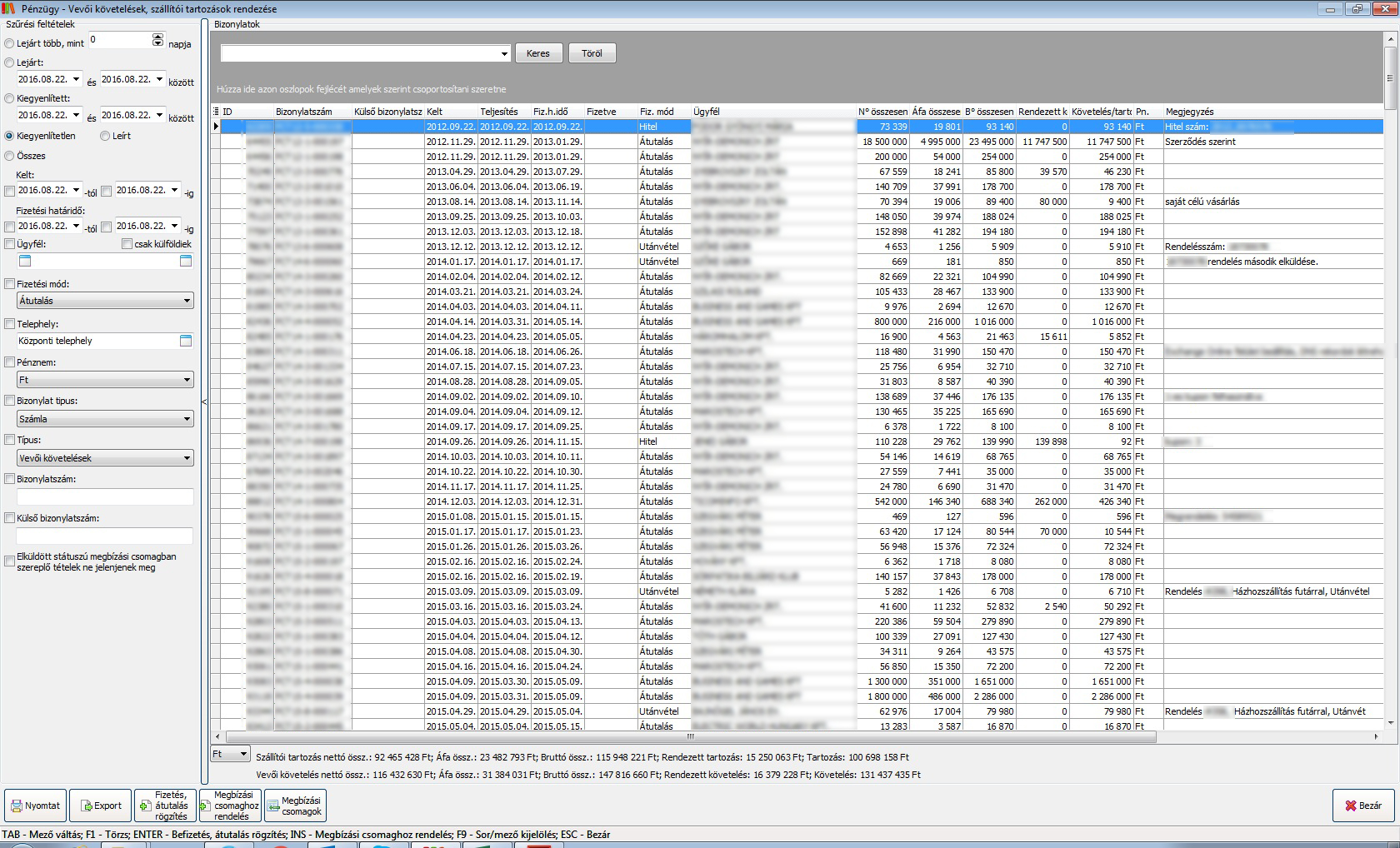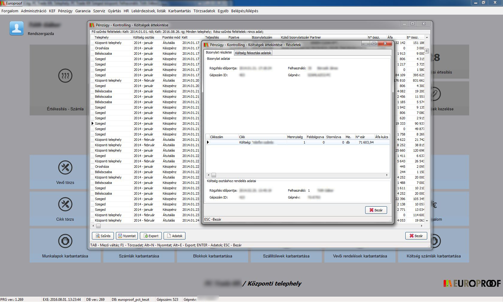 Az Europroof© ügyviteli rendszer Pénzügyi modulja a vállalat felmerülő pénzügyeinek komplex menedzselése a bank, pénztár, vevők és szállítók összefüggésében.